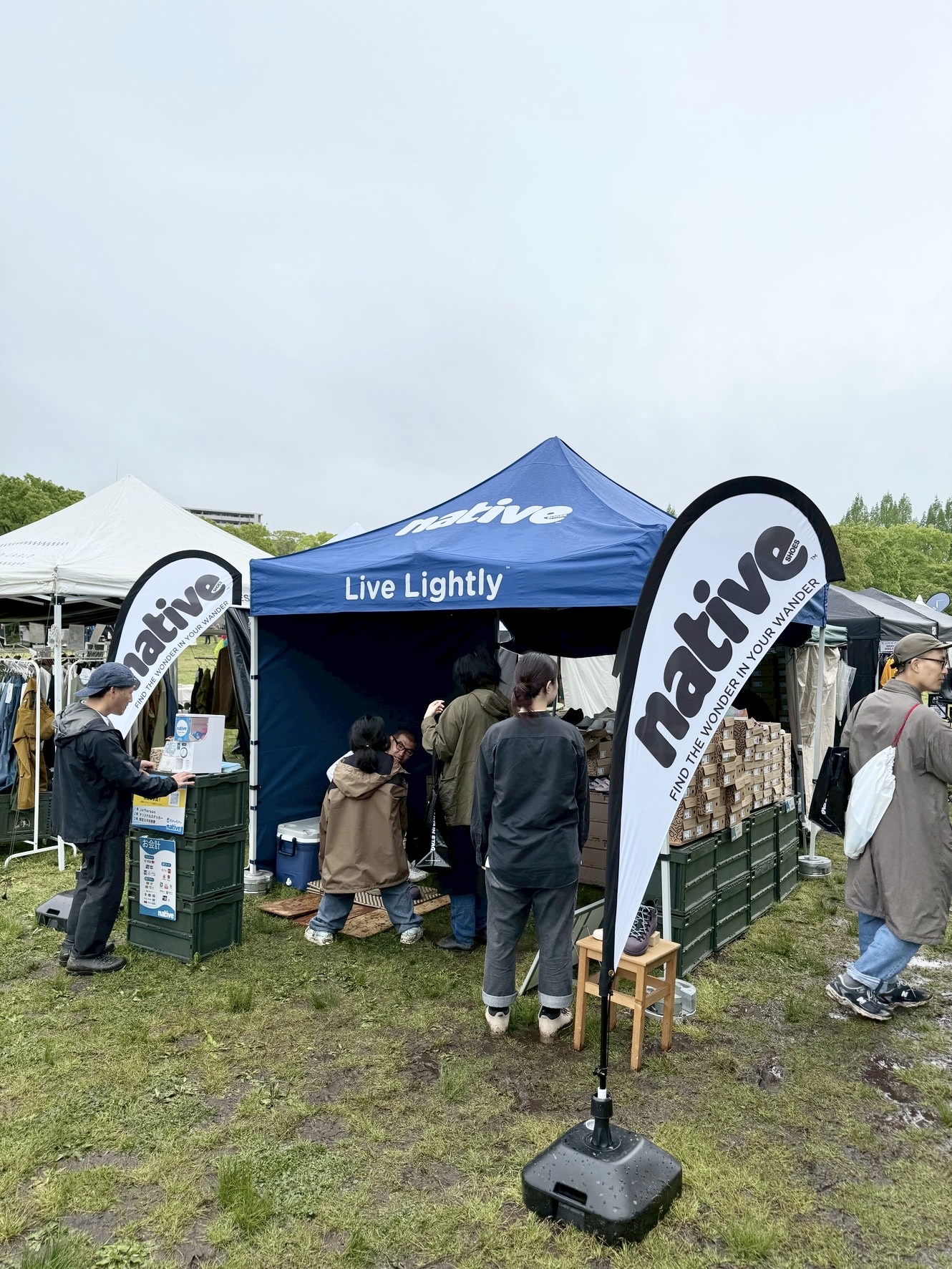 初開催!あいにくの雨でしたが、仙台のアウトドアデイジャパンにnative shoes ブースとして出展参加しました。